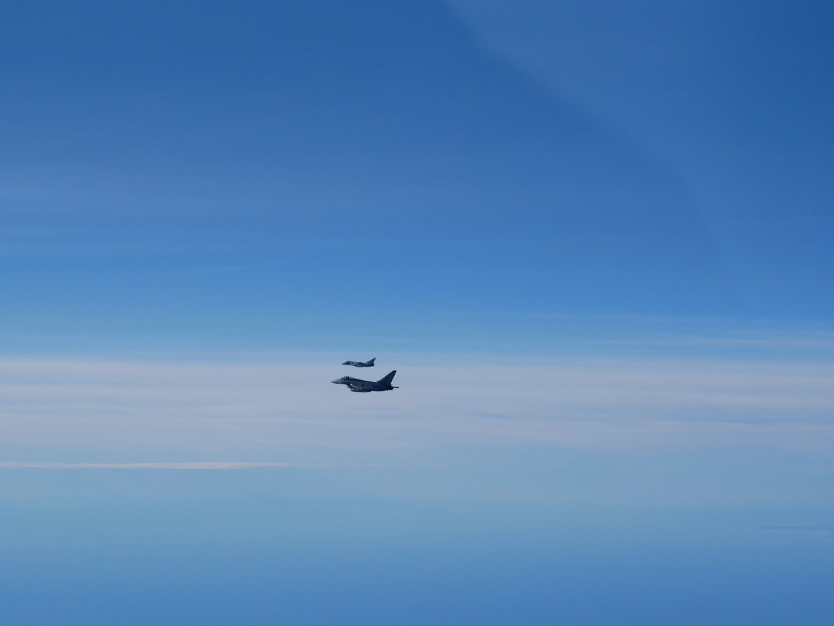 #Luftwaffe den Luftraum über dem#Baltikum. Gestern stiegen zwei#Eurofighter als#NATO Alarmrotte auf um russische Flugzeuge - zwei#Flanker und eine#TU134 - zu identifizieren.#Team_Luftwaffe#Bundeswehr#Typhoonpic.twitter.com/jieLJuFsZ7