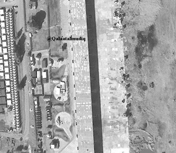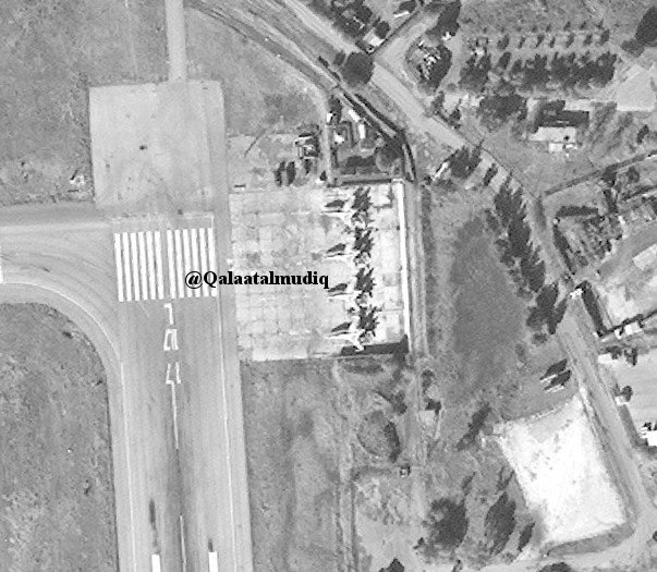 #Syria: fresh sat imagery shows construction of aircraft shelters (18) by#Russia in#Khmeimim Airbase is mostly over. Jets still parked outside (16 visible in total).pic.twitter.com/IzXF5dbUrb