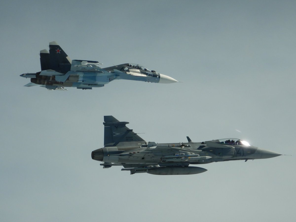 #Hornet -hävittäjä tunnisti kaksi Venäjän ilmavoimien Suhoi SU-27 Flanker -konetta kansainvälisessä ilmatilassa.#Alueloukkaus’ta ei tapahtunut.pic.twitter.com/vJ3EXUompl