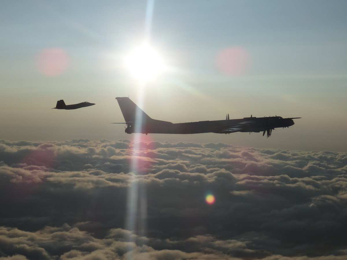 NORAD fighters intercepted Russian bombers+fighters entering Alaskan ADIZ May 20. 2x Tu-95s were intercepted by 2x F-22s; a second group of 2x Tu-95+2x Su-35 was intercepted later by 2 more F-22’s; NORAD E-3 provided overall surveillance. The aircraft remained in int'l airspacepic.twitter.com/VrNuSWFOQm