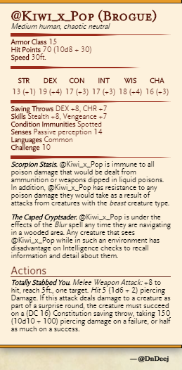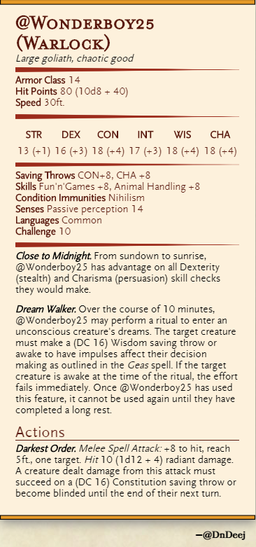 Much appreciation to everyone who participated in my gif game last night, and as promised, the winner got their stat block out first. Y'all made waking up that early a much easier task. Thank you