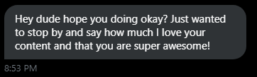 As your visibility grows, make sure you're aware that people you don't know will view your progress differently. Some will enjoy seeing it. Others will not. That's ok... An unfortunate side effect of the internet. Pay it no mind. (Don't know who sent the bad one. It's a burner)pic.twitter.com/7awcatWOiT