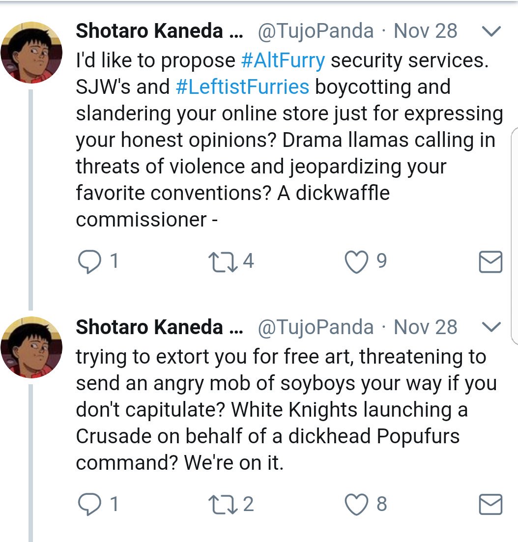 What exactly are these "security services" going to do about people exercising their first amendment rights to speak or boycott? Beat people up if they don't buy? So they're trying to be the furry mafia then. Lovely.