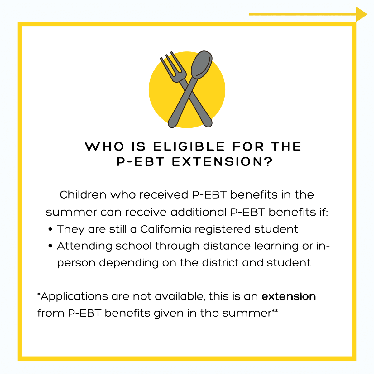 PANDEMIC EBT EXTENDED!!! *Applications are not available, this is an extension from P-EBT benefits given in the summer* New P-EBT extension cards will arrive in the mail in early November 2020 through late December 2020. More info: http://cdss.ca.gov pic.twitter.com/xMtwlb7VtC