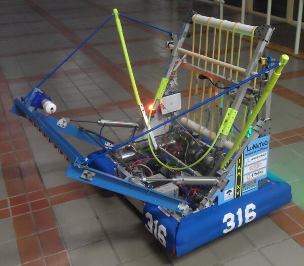 Check out our 2014 robot, SAM XV: https://youtu.be/JAw0z5Qd55Q