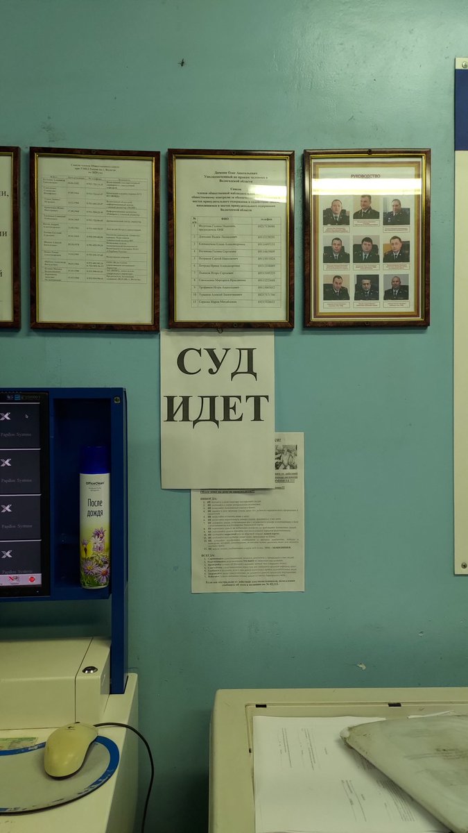 Начальник второго вологодского отдела @fssp_rus уже 15 минут сидит в дежурке и что-то решает. Какое-то проблемы с тем, чтобы меня принять. Вроде звонит начальнику городского УМВД. Цирк какой-то. Трансляция начала шапито тут https://youtu.be/HsxWuRpZP5E pic.twitter.com/pHcfV2Iizc
