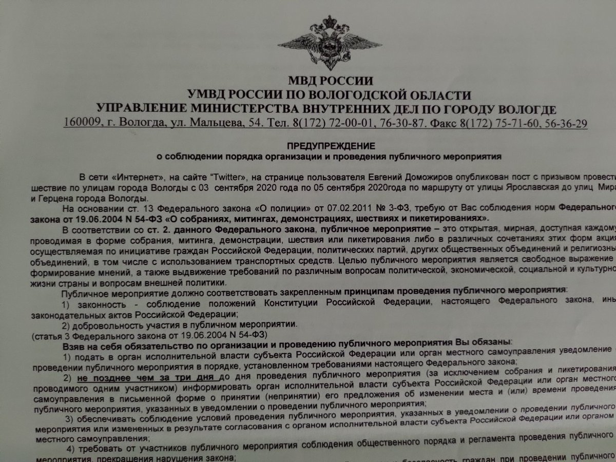 Лежу под капельницей, приходят в палату полицаи. Очень надо вручить предупреждение о шествии. А я даже расписаться не могу в принятии. Очень у них подгорает из-за шествия, значит точно надо идти. Прощание с Сергеем Пахолковым завтра 6 сентября с 12.30 на Пошехонском шоссе 29Аpic.twitter.com/pRIV1oL5tu