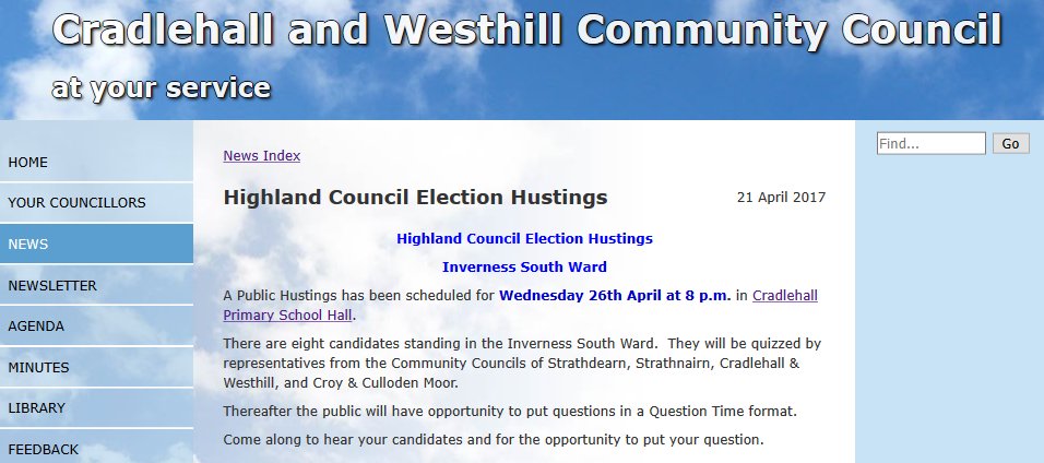 I plan to be at the hustings in Cradlehall Primary School Hall Wed 26/4/2017 at 8 p.m. Come along to hear the debate http://westhillcc.co.uk pic.twitter.com/eYnS1rGiHe