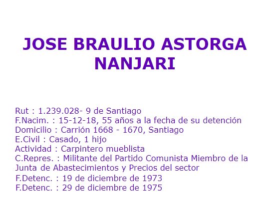 Tenía 55 años cuando fue secuestrado x agentes civiles desde su casa; fue llevado a Tejas Verdes, donde murió x las torturas el 20 de diciembre y se hizo desaparecer su cadáver: http://www.memoriaviva.com/Desaparecidos/D-A/ast-nan.htm …
