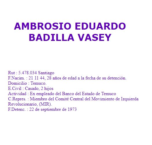 Lo detuvieron efectivos FACH en casa de 1 amigo, en Temuco; lo llevaron al regimiento Tucapel, donde fue torturado y hecho desaparecer. Era primo de Bautista Van Schouwen, alto dirigente del MIR también DD: http://www.memoriaviva.com/Desaparecidos/D-B/badilla_vasey_ambrosio.htm …