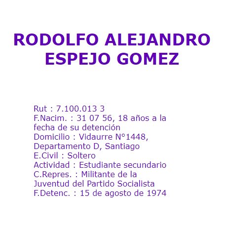 Menor de edad en esa época, fue secuestrado en el depto en q vivía, en Santiago; lo llevaron a Londres 38, José Domingo Cañas (en ambos sitios fue torturado) y Cuatro Álamos, de donde se lo llevaron con rumbo ignoto. Fue víctima de la Operación Colombo: http://www.memoriaviva.com/Desaparecidos/D-E/esp-gom.htm …