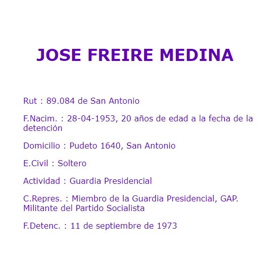 Era menor de edad cuando fue asesinado en Peldehue, junto con otros GAP. Su cadáver fue hecho desaparecer en 1978 (operación Retiro de Televisores); parte de sus restos fueron hallados en el fuerte Arteaga (Colina), e identificados recién el 2002: http://www.memoriaviva.com/Desaparecidos/D-F/fre-med.htm …