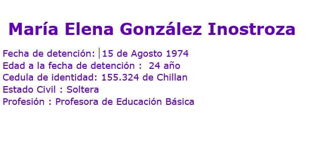 Fue detenida x DINA junto con su hermano Hernán y otras personas, en Stgo; los llevaron a Londres 38 y Tres Álamos, en donde fueron vistos x última vez: http://www.memoriaviva.com/Desaparecidos/D-G/1i.html …