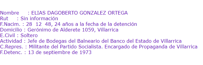 Militante del Partido Socialista. Encargado de Propaganda de Villarrica