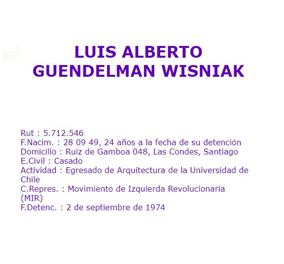 Lo detuvieron en su casa en Las Condes, y lo llevaron a José Domingo Cañas y Cuatro Álamos; de allí lo sacaron con destino ignoto el 26-9. Fue víctima de la Operación Colombo, en 1975: http://www.memoriaviva.com/Desaparecidos/D-G/gue-wis.htm …