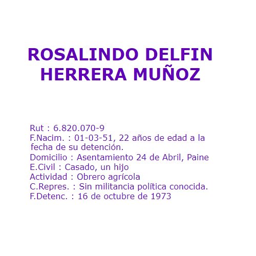 En esa oportunidad tbn detuvieron al tío de su esposa; junto cn otros 20 lugareños, fue asesinado y enterrado clandestina% en 1 quebrada cerca de Rapel. Los cadáveres fueron hechos desaparecer en Operación Retiro de Televisores, a fines d 1978: http://www.memoriaviva.com/Desaparecidos/D-H/her-mun.htm …