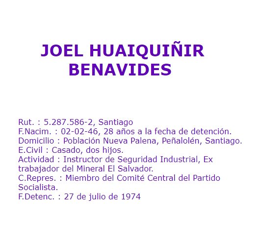 Lo detuvieron en casa de 1 amigo en Ñuñoa; lo llevaron a Londres 38 y Cuatro Álamos (tbn habría sido visto en Villa Grimaldi), de donde lo sacaron "rumbo al sur" a fines de agosto o principios de septiembre d ese año. Hasta hoy está desaparecido: http://www.londres38.cl/1937/w3-article-97897.html …