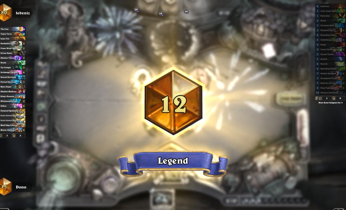 My togwaggle list is still good. I refuse to play that new card. Not playing too much ranked because it doesn"t matter at all and every other deck is cloning priest, but I thought I would get high rank to show you that this list is still good. Tomorrow is our last day with tog :(pic.twitter.com/B75kOuFans
