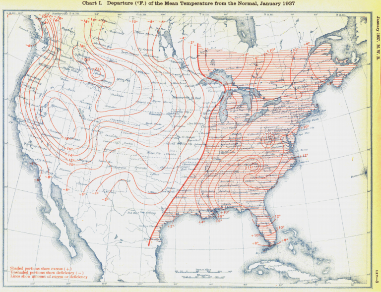January 1937 was the coldest on record west of the Mississippi River, and the warmest on record east of the Mississippi. Too bad