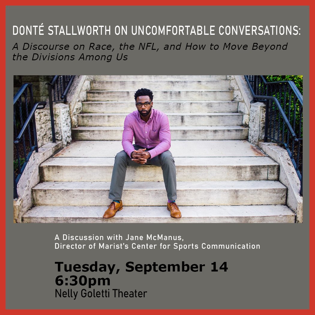 Our first speaker event of the semester is tomorrow! (For the campus community only, alas.) 10-year NFL veteran Donte Stallworth joins us to talk about race, the league and overcoming division.pic.twitter.com/3renO5frPQ
