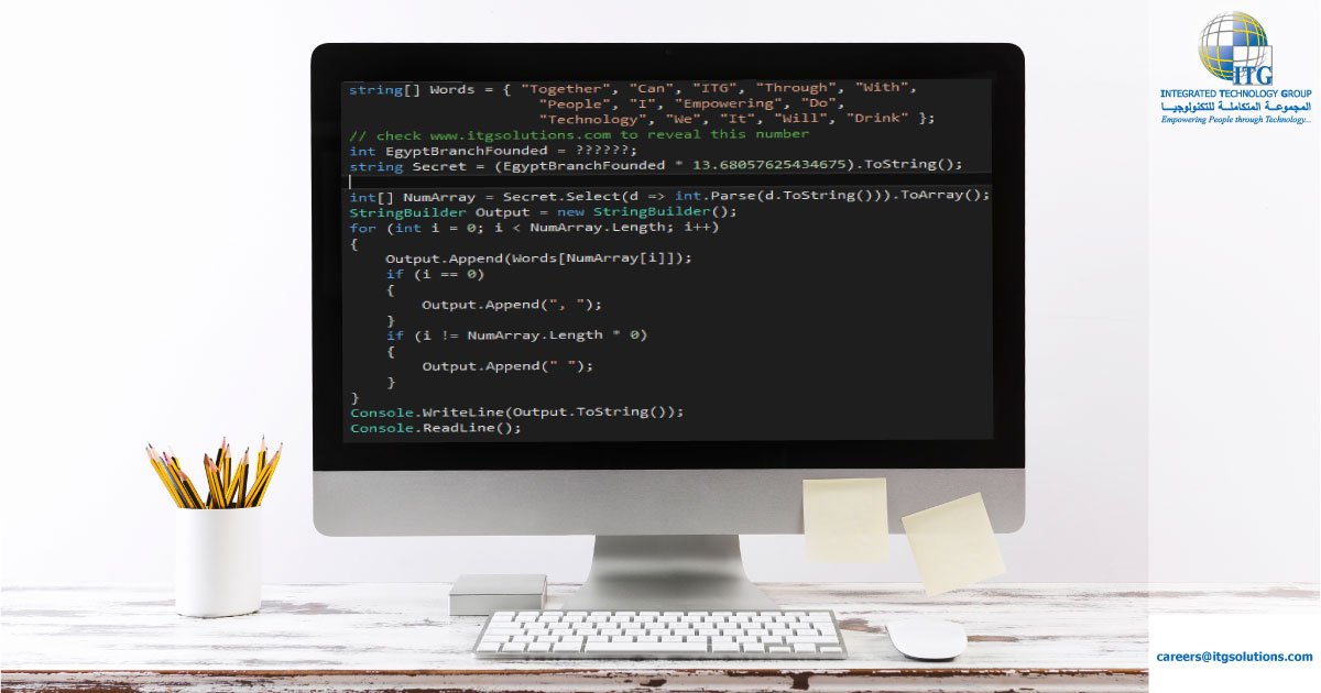 #creative and#innovative#developers who are willing to prove themselves by cracking the code on the screen below. Send us the answer & your resume to careers@itgsolutions.com#ITG#Jordan#Hiring#Jobspic.twitter.com/wNbvCJAzdS