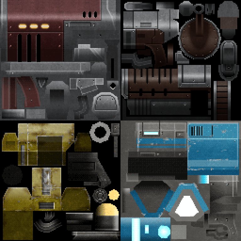 For the more curious artists, here are some of my tightly packed 128x128px weapon textures for