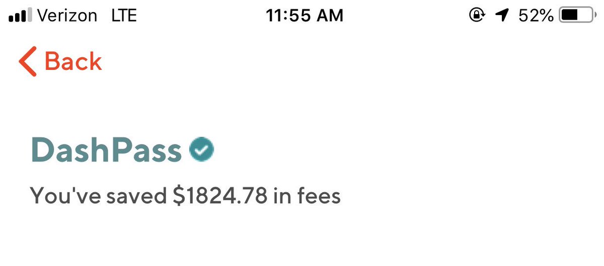 I’m actually disgusted with myself... I have ordered so much food from doordash with their dash pass (you don’t pay fees) over the last year that I saved over $1,800. I have to stop eating out so much.pic.twitter.com/PXBjThaFvW