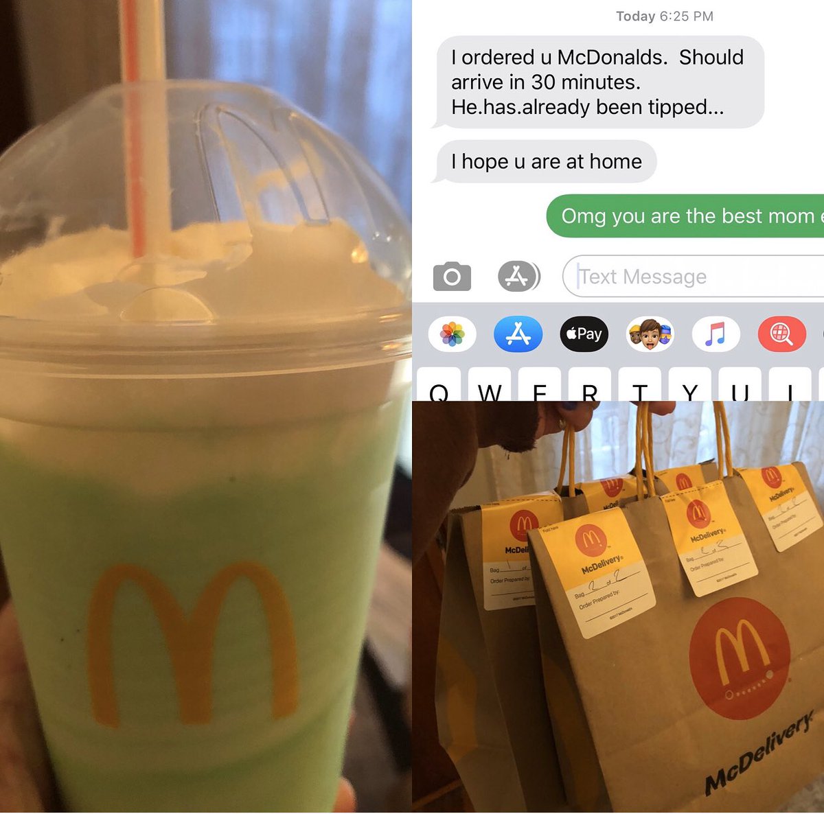 I have the best mom ever! Work from home quarantine & she sent me a Shamrock Shake & food from @McDonalds via @DoorDash