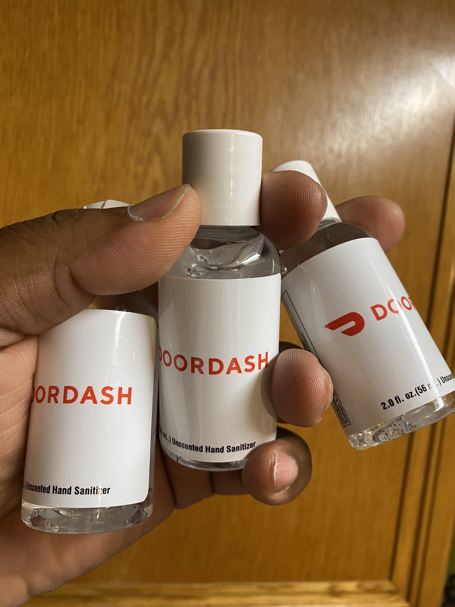 Thank you @DoorDash for helping me protect myself with the hand sanitizer and gloves you provided while I deliver food to people in this time were in. #Thanks