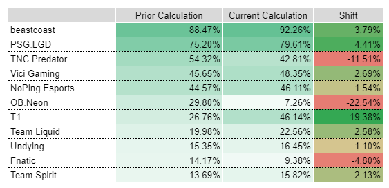 @T1, bad day for SEA otherwise. Seems very likely there'll just be 2 SEA teams at TI, 1 directly qualified, and one via regional qualifiers. If all of them fail to top 8 at the major - perhaps only 1 makes it. Minor gains for the teams in the middle > 700pts.pic.twitter.com/fWGMkDYDUq