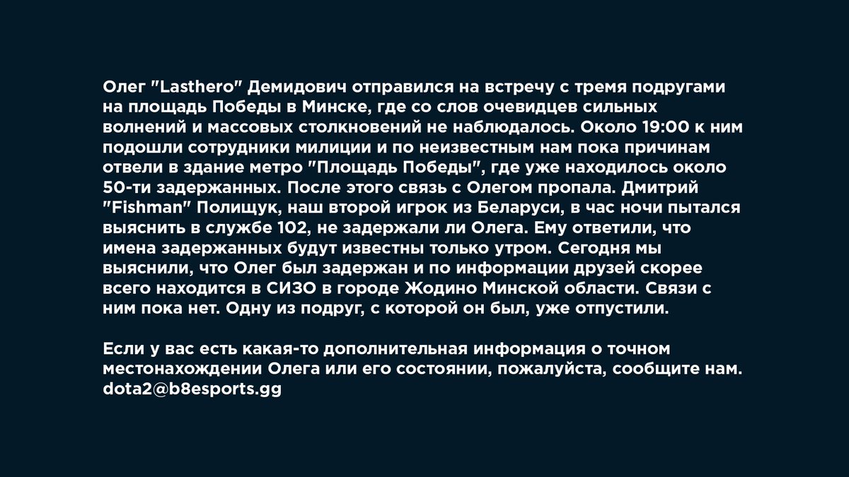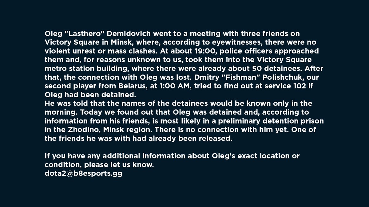 If you have any additional information about Oleg's exact location or condition, please let us know. dota2@b8esports.gg At the moment, all the information we know is set out below.pic.twitter.com/JOsYrfvKhd
