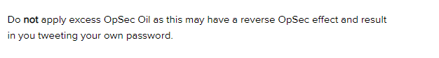 Yes I highly recommend a standard dolloping of OpSec Oil, as it can be quite potent. I will soon be releasing OpSec Oil Light, for a gentler persona management need.