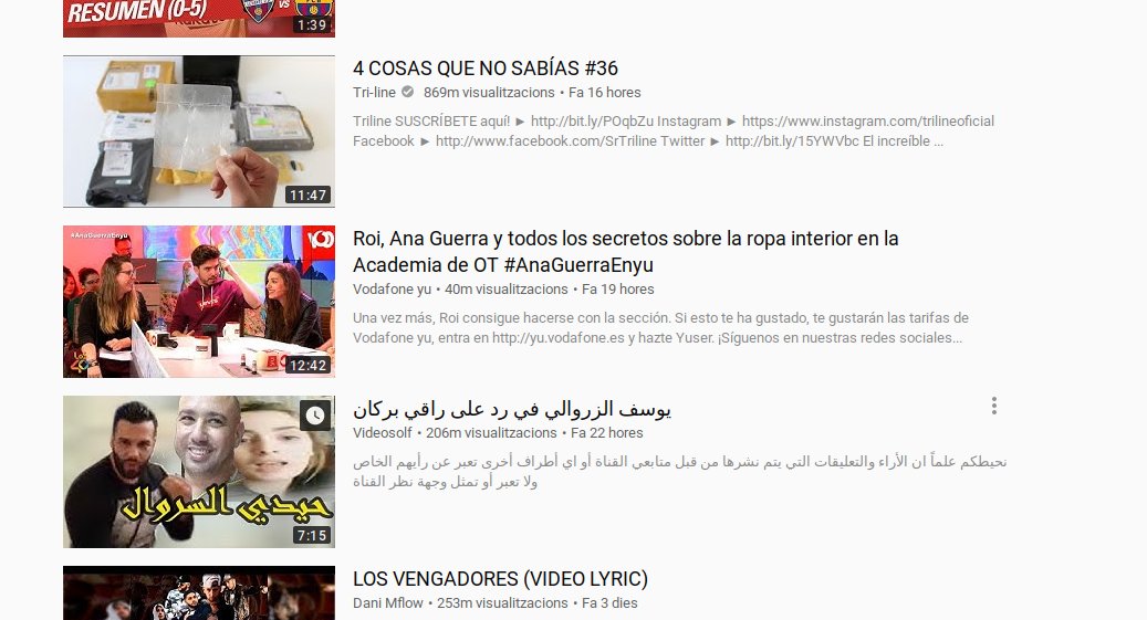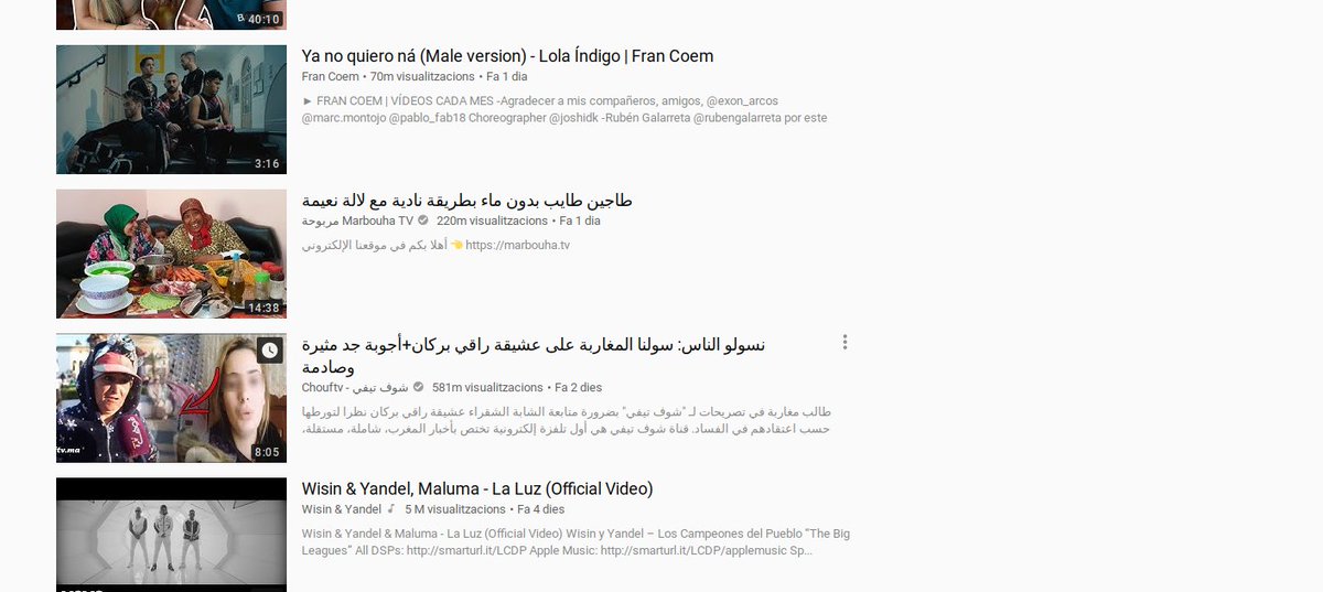 Sigue sin responder al sentido de vídeos arabes en tendencias de España y canciones a morir. Deberia enfocarse como digo mas a creadores de contenido 🙄. Antes estaban mejor YouTube, te metias y veías cosas interesantes, ahora solo basura o musica.