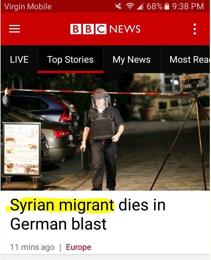 A Syrian asylum seeker kills himself nd injures 12 others in a bomb attack in Ansbach. The BBC:pic.twitter.com/AciGDiErLp