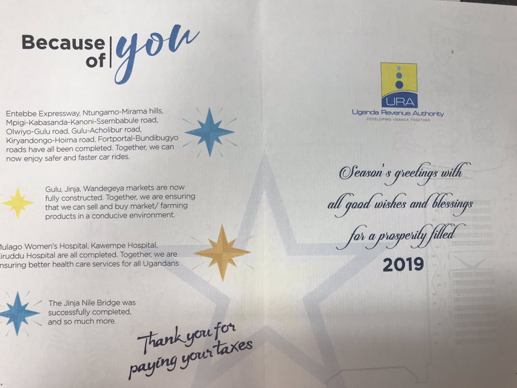 Reaching my workplace only to get these New Year Gifts from Uganda Revenue Authority(URA). Thank you for thinking about me