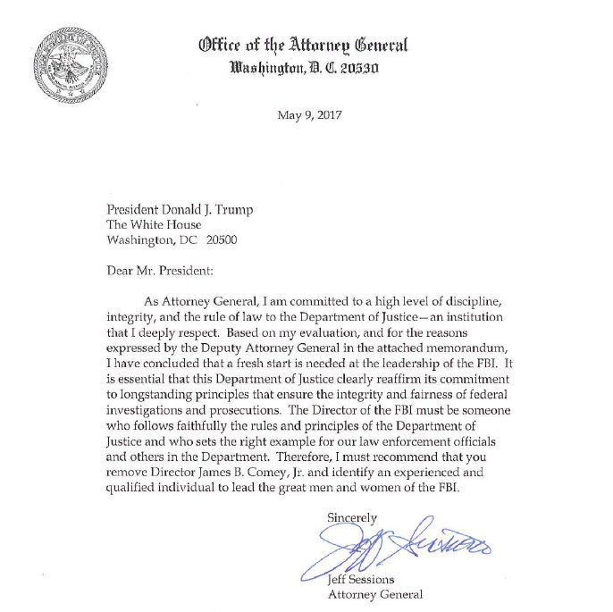 How does attorney general who has recused himself re Russian investigation recommend firing guy running investigation? Still dont understandpic.twitter.com/huKhVICxV7