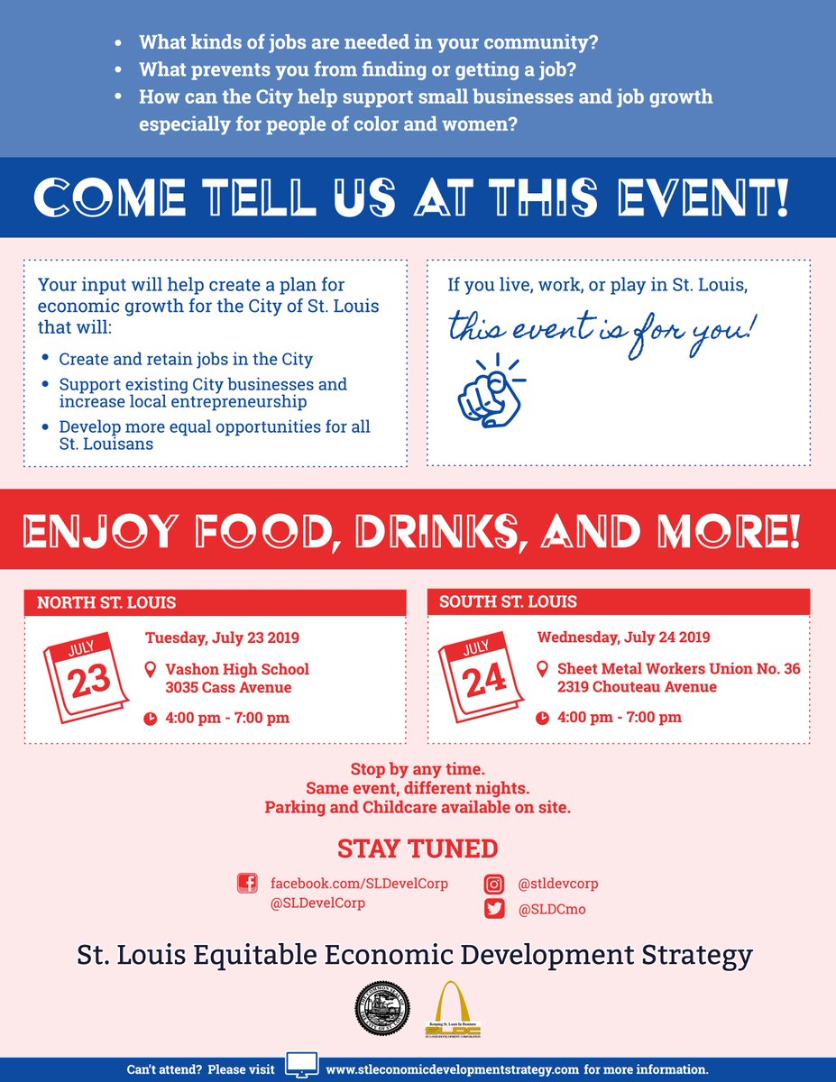Let's talk STL job equity. What jobs are needed? What's preventing access? How can the city support small biz, esp for PoC & women? A vital discussion is happening July 23 & 24 to shape the STL Equitable Economic Development Strategy. We'll see you there. https://stleconomicdevelopmentstrategy.com/ pic.twitter.com/iMdRl1HiNx