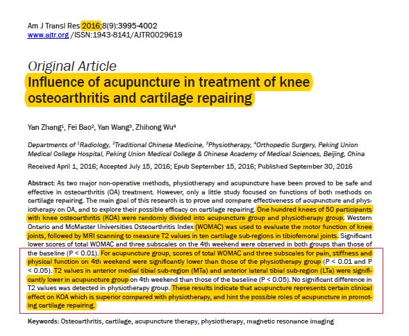 7-point standardized electroacupuncture is superior to physiotherapy for pain, stiffness, function (WOMAC) & cartilage repair (MRI)pic.twitter.com/DjSfyc6sTU