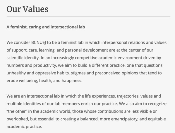 As a sort of mission statement, we added this text to our About page bc we feel strongly about establishing a work ethic that puts human values at the center of our scientific practice. http://www.bcnuej.org/about/ Do you have a work ethic that you'd like to share as a researcher? pic.twitter.com/QZt3OwYCZi