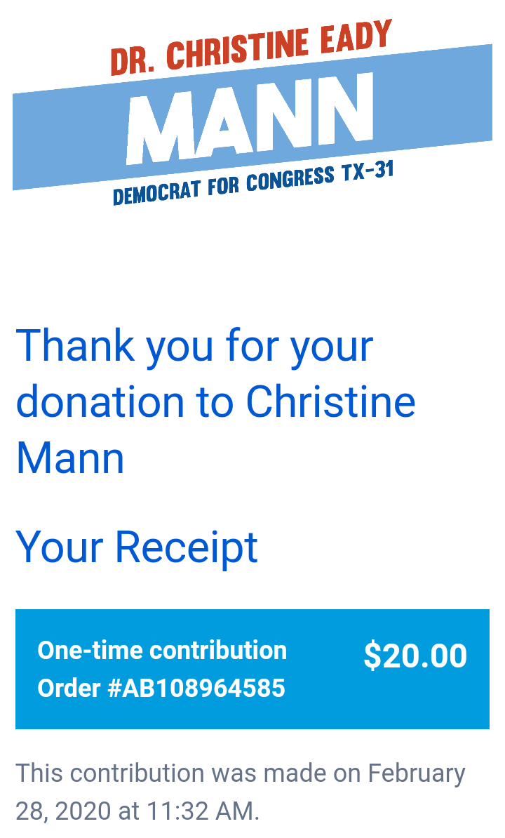 Thank you! We are so close to our primary fundraising goal. Ever dollar counts! Who will help us send our Trump enabling Tea Party Republican home?https://twitter.com/ElectWomen420/status/1233744850752765952 …