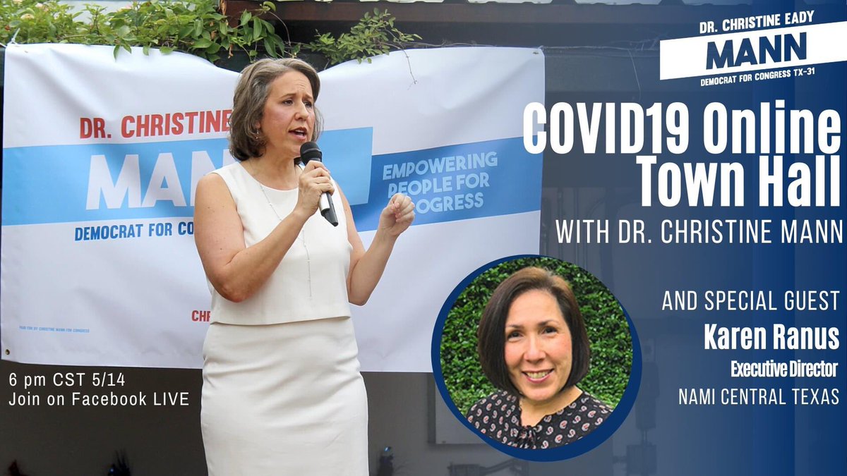 The Doctor is in TONIGHT w/ special guest @KarenATXMH of @NAMICentralTX! Join our next free online town hall, as we discuss the mental health impacts of #COVID19. This will be a great discussion so as always RSVP & submit questions HERE: https://www.christine4congress.com/town-hall