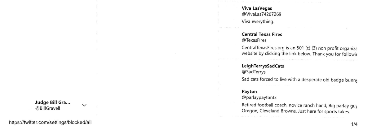 Gravell refused and was forced by the AG to provide his blocked list from Twitter & Facebook. I don't see my name. Pages 3 & 4 are duplicates & 2 pages are blank. Looks like he's still being shady. If you are blocked by @billgravell and don't see your username post a screenshot.pic.twitter.com/KvqQkoRqbX