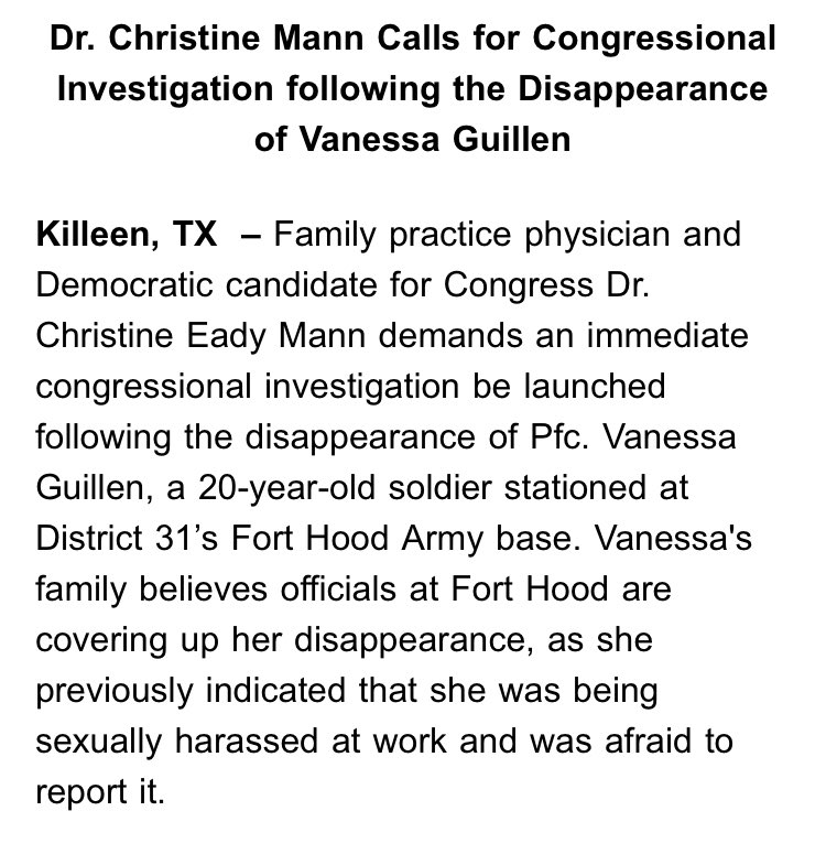 The more & more that comes to light in the #VanessaGuillén case, the more and more we see we need answers and a congressional investigation.https://twitter.com/kdhnews/status/1278771437315198977 …