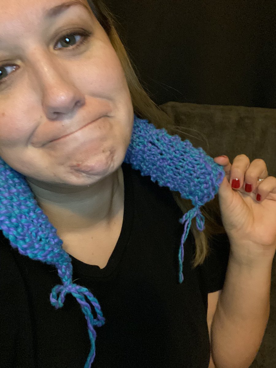 Finished my scarf... I can add some buttons and maybe it can be like a neck warmer... a misshapen neck warmer. I guess I need more practice, but it was a lot of fun! LMAO 🤣pic.twitter.com/nTuGyDiqn3