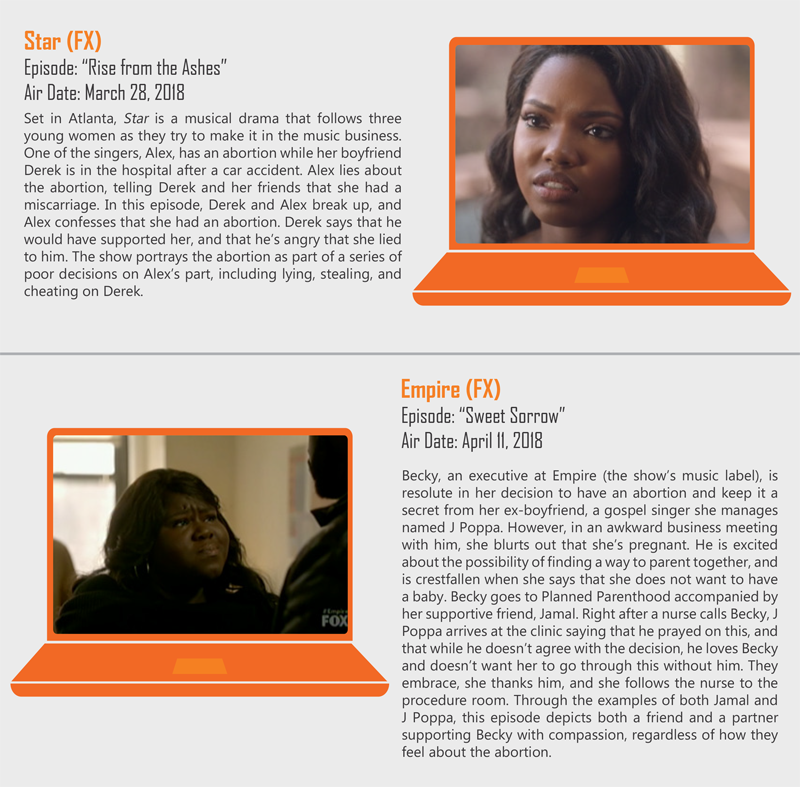 This year, 18 TV plotlines featured characters who either had an abortion, disclosed a past abortion, or considered getting an abortion. Read the full report, including show details and episode summaries, from