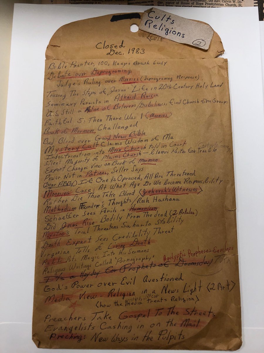 In honor of Octavia Butler’s 72 birthday, here’s something from her papers collected @TheHuntington Library. A folder on cult religions, probably for research on Parable of the Sower.pic.twitter.com/yBBTARvHBr
