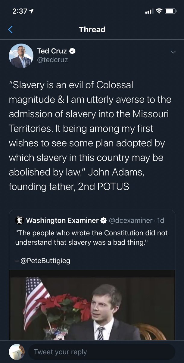 Pete Buttigieg is getting corrected on his abhorrent slavery take... by Ted Cruz. pic.twitter.com/bW7IM4d3W8