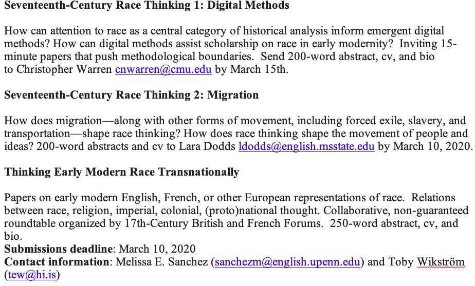 Thinking about #mla2021? Check out these three panels sponsored by the Seventeenth Century British lit Forum and in collaboration with the Seventeenth Century French lit Forum. Share widely (and submit abstracts)! pic.twitter.com/RL2XgqbuoR