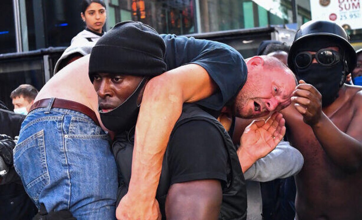 The oppressed are constantly being asked to extend humanity to the oppressor even when that acknowledgment of humanity is not returned. Kudos to this man for being better than the one he is helping. That should not have to be the standard or requirement. #BlackLivesMatter