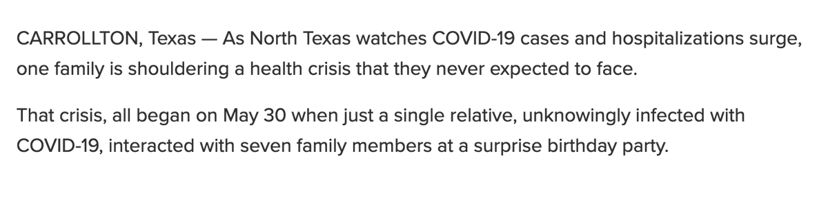 Even though everyone did their best to stay socially distant, Barbosa said it wasn't enough.https://www.wfaa.com/article/news/north-texas-family-shaken-after-18-relatives-test-positive-for-covid-19-following-surprise-birthday-party/287-ea8960ea-4c3c-40c1-b75e-f4437fe6f836 …